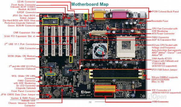 ديجرام خاص او خريطه توضح العناصر الاساسيه للماذر بورد ( للمبتدأئن )