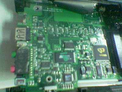 The attached PCMCIA removed and the protective sheet has been peeled to give us a clear view to the EEPROM.